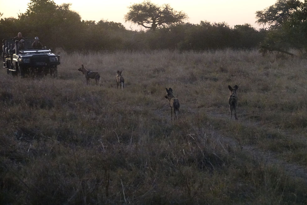 After we wrapped up our 45 minute ride, it was time to head back to our camp for a bit of lunch and relaxation for about three hours. At around 3:00 PM, we headed back out and voted to go to where our guide thought the den was for the wild dogs, who just had a litter of pups. When we got there, it became evident that they were going on a hunt and we followed along to the best of our ability. They were in a pack and had identified an impala as their target. We followed them around for over an hour and were within 100 yards of the impala when it was surrounded by the wild dogs, but for whatever reason they let it get away.
